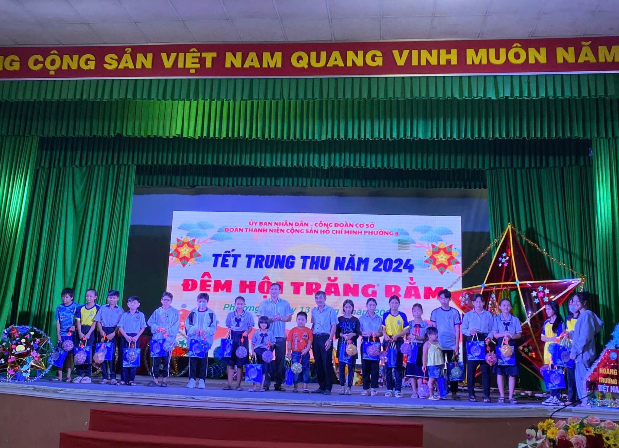 Tối ngày 13/9/2024, UBND Phường 4 phối hợp cùng UBMTTQVN và các tổ chức chính trị - xã hội phường tổ chức Tết trung thu cho trẻ em năm 2024 với chủ đề “Đêm hội trăng rằm”.